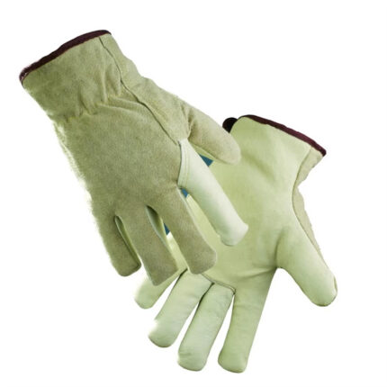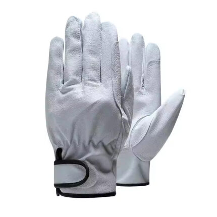 • Practical white gloves featuring black trim and an adjustable hook-and-loop wrist strap for a secure fit. Suitable for light utility work, driving, or uniform wear.