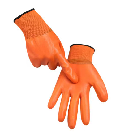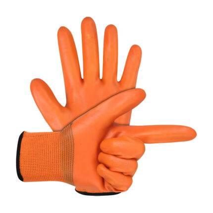High-Visibility Orange Nitrile/Latex Coated Work Gloves – Waterproof & Safety Grip