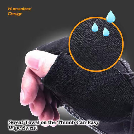 Half-finger design for dexterity; bright red accent stitching; padded and vented palms; integrated adjustable wrist support strap; suitable for gym, cycling, and fitness. Color: Black with Red.