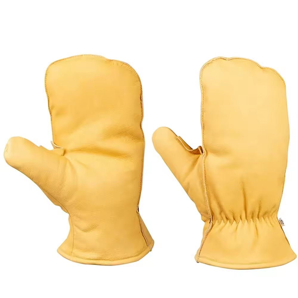 Customizable Men’s Plain Leather Mittens Gloves for Winter Cold Weather Outdoor Applicable Skin Color