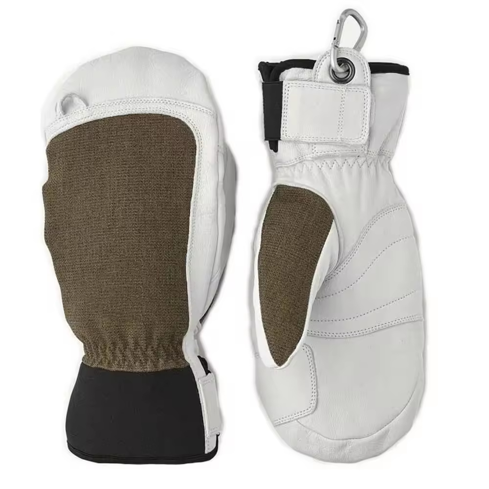 Material & Durability: Constructed from a combination of durable white and black materials, likely weatherproof leather/faux leather and reinforced synthetic fabric. The white sections are padded and quilted, while the black areas (like the palm and cuff) are reinforced.