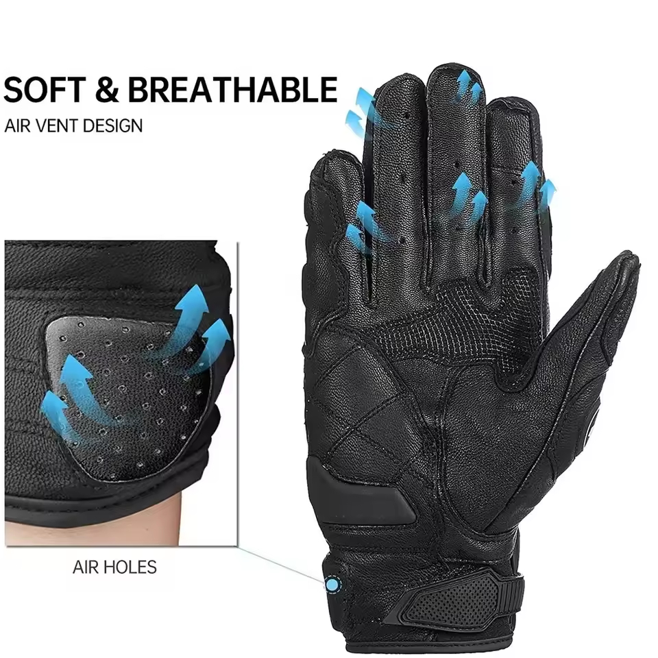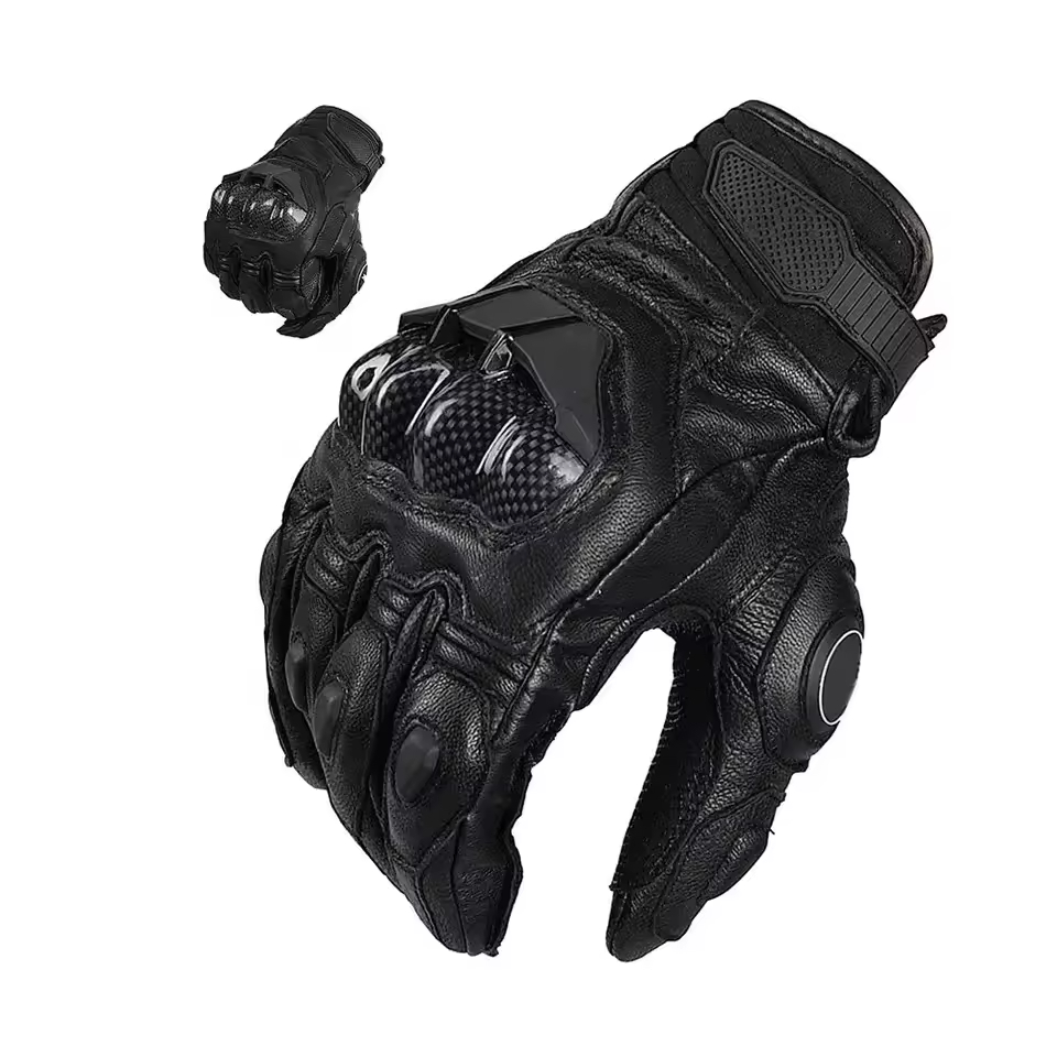 Heavy Duty Black Motorcycle Gloves – Carbon-Look Knuckle Armor & Reinforced Gri