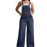 The ultimate blend of comfort and street-style chic, these Dark Wash Denim Dungarees are a must-have for your casual wardrobe. Featuring a classic bib front, adjustable shoulder straps, and practical side buttons, this pair offers a flattering high-rise and a comfortable slim fit through the leg. The medium-to-dark blue wash is versatile and includes subtle fading and distressed detailing for an authentic, edgy look. Pair it with a simple tee in the summer or layer it over a cozy turtleneck and combat boots, as pictured, for a flawless cold-weather ensemble. Finished with a stylish cuffed hem that hits just above the ankle.