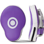 These professional-grade focus mitts are engineered for speed, accuracy, and rigorous training sessions. Featuring a sleek, contoured design, they are optimized to catch fast combinations and minimize impact on the trainer’s hands. The striking surface is durable black synthetic leather with a highly visible pink bullseye target, enhancing the boxer’s focus and precision. The mitts utilize multi-density foam padding that effectively absorbs shock and provides a satisfying ‘pop’ sound upon impact. The back features a secure, comfortable fit with a ventilated glove pocket and a hook-and-loop wrist strap to prevent slippage, ensuring stability and safety for both the coach and the athlete.