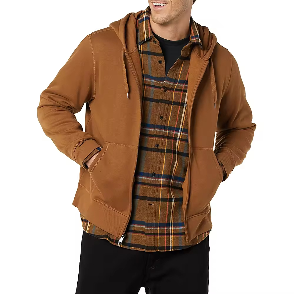 Men’s Classic Full-Zip Hoodie – Everyday Brown Fleece Sweatshirt