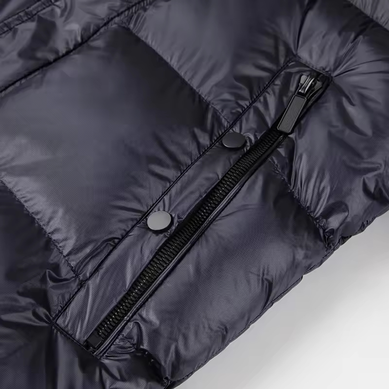 Maximum Warmth, Minimalist Style: The Matte Black Winter Puffer Jacket. Built for extreme cold, this jacket features a non-shiny matte black finish and high-volume insulation, ensuring superior warmth without the bulkiness of traditional puffers. The design includes a fully integrated, protective hood and an adjustable drawstring hem to seal out the elements. Its clean aesthetic makes it the ideal durable and stylish cold-weather staple.