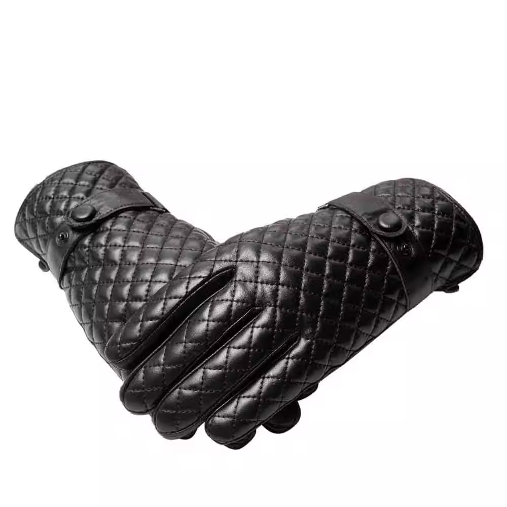 Step into the cold with unmatched style and warmth. These elegant gloves feature a striking diamond quilted pattern across the back of the hand and palm, offering a luxurious texture and sophisticated, high-end look. Crafted from a supple, durable PU leather-style material, they provide excellent protection against wind and cold without compromising on dexterity. The gloves are designed with a smooth, fitted silhouette and include a reinforced cuff with a secure snap-button wrist strap to lock in warmth and ensure a snug, comfortable fit. Whether you are driving, commuting, or completing your smart winter ensemble, these gloves are the perfect accessory to keep your hands warm while projecting polished, timeless style.