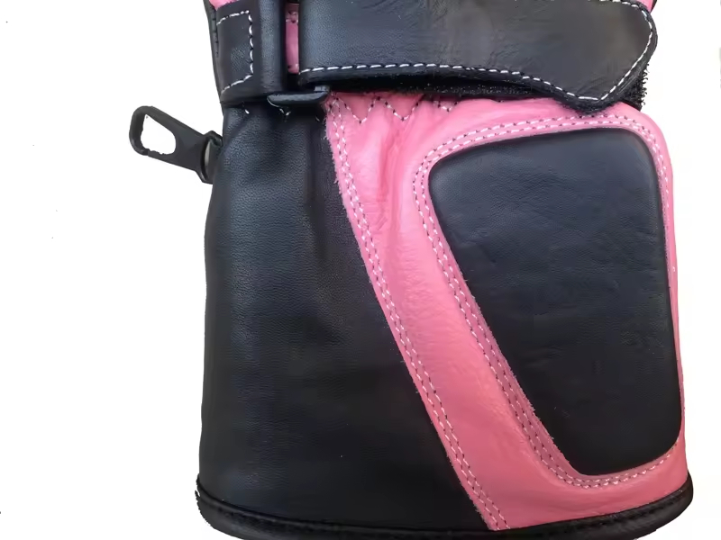 ngineered for the demands of high-speed racing and aggressive street riding, these gloves offer superior protection and control. The design features a multi-panel construction of black, white, and tan leather, incorporating numerous external hard-shell protectors across the knuckles, fingers, and back of the hand for maximum impact and abrasion resistance. The full-gauntlet (long) cuff provides critical wrist and forearm protection, secured by dual-closure systems, including a robust wrist strap and an outer buckle/fastener, ensuring the gloves stay securely in place during a slide. The palm is reinforced with leather and synthetic panels (possibly including carbon fiber look-alikes) for exceptional grip and durability.
