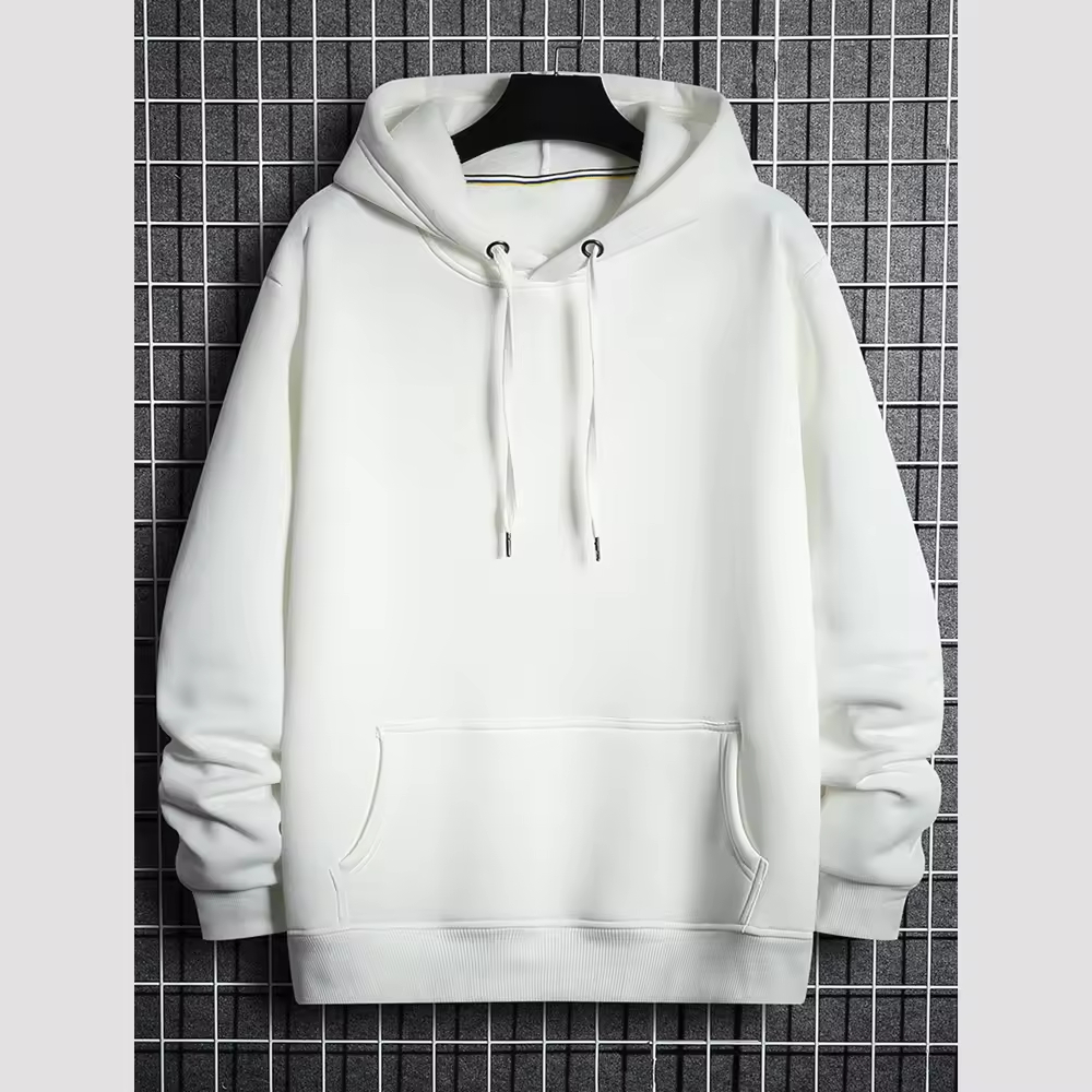 Classic White Pullover Hoodie – Unisex Blank Fleece Sweatshirt
